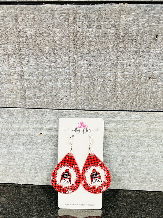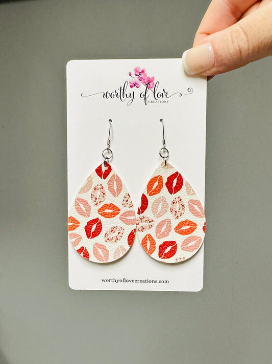 Valentine’s Day Kisses print faux leather stainless steel statement earrings