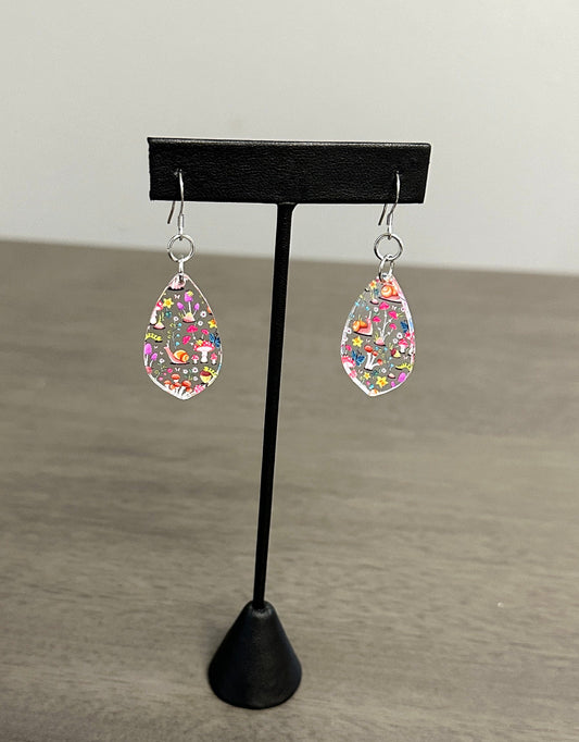 Snail and mushroom print earrings, stainless steel hypoallergenic earrings, mushroom earrings, snail earrings, caterpillar earrings