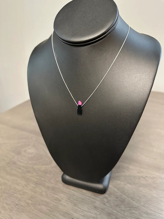 Fire Opal and Mother of Pearl pink lipstick sterling silver necklace