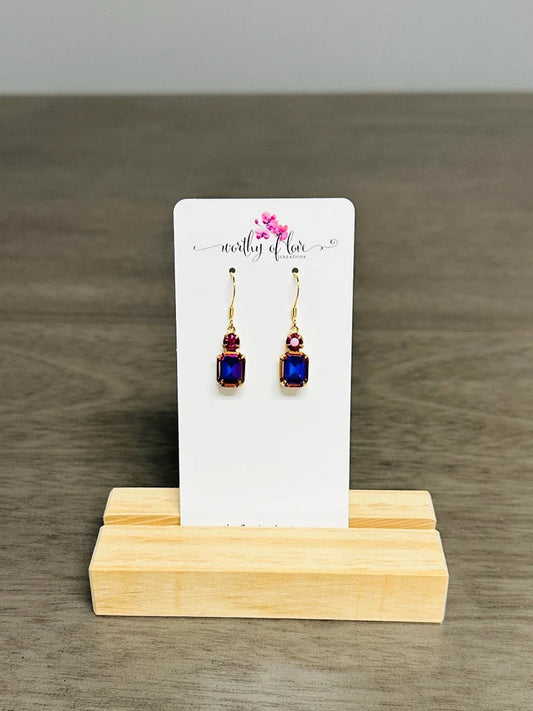 Crystal violet blue aurora borealis and fuchsia crystal gold plated earrings
