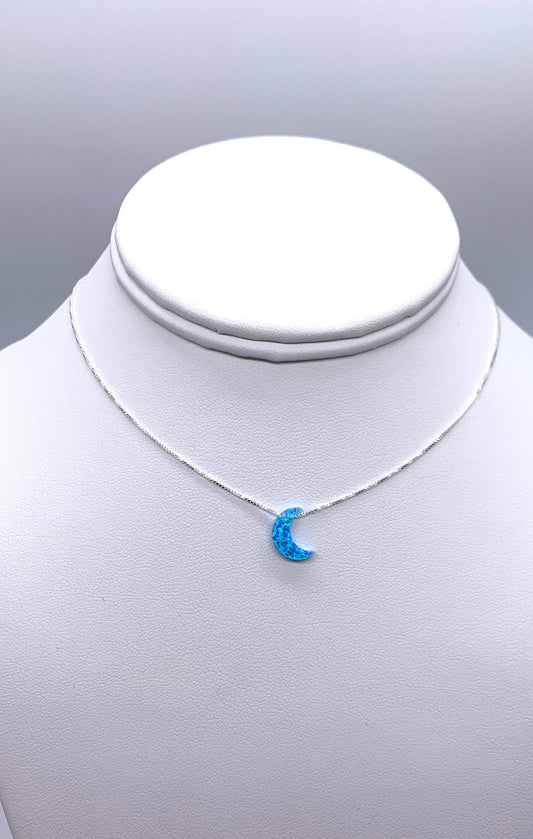 moon necklace fire opal sterling silver in light blue