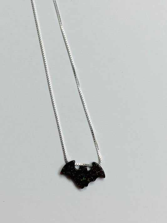 Opal bat necklace, fire opal necklace, bat necklace sterling silver chain