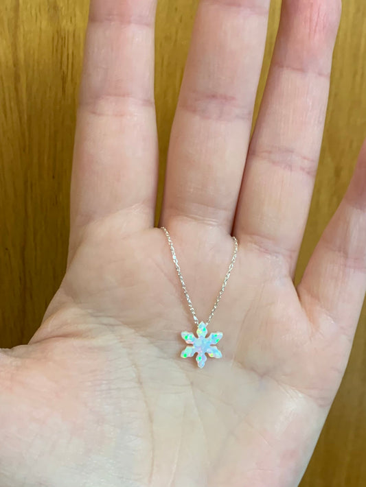 Opal Snowflake Necklace on a delicate sterling silver chain, Winter wedding necklace, Christmas necklace, Holiday necklace