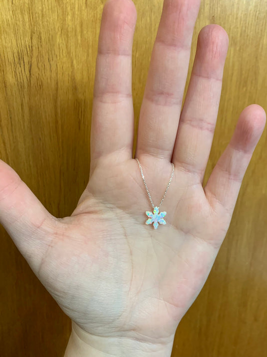 Opal Snowflake Necklace sterling silver, Winter wedding necklace