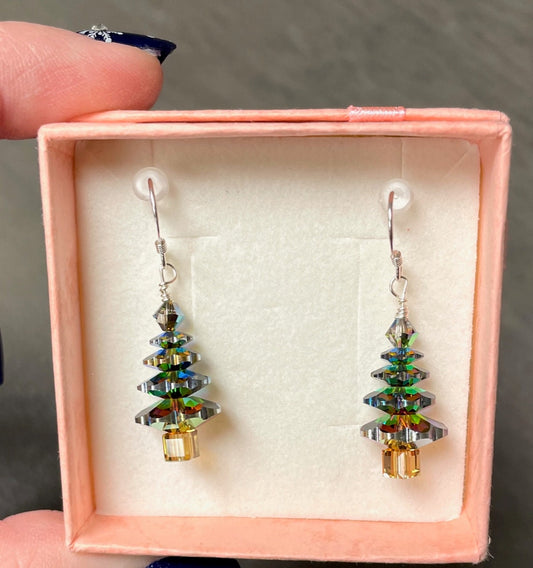 crystal sterling silver christmas tree earrings