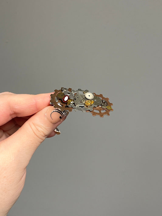 Steampunk hair clip with red garnet gemstone and Crystals