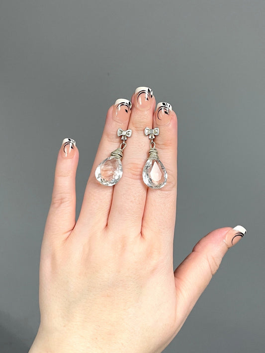 white topaz sterling silver bow earrings